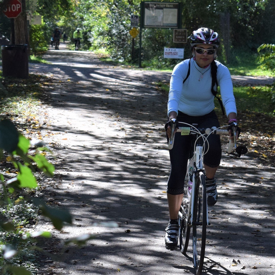 Today’s bike pic, we look at the fun everyone is having now that summer is in full swing, In this photo, we captured this biker chick enjoying the Red Jacket Trail,